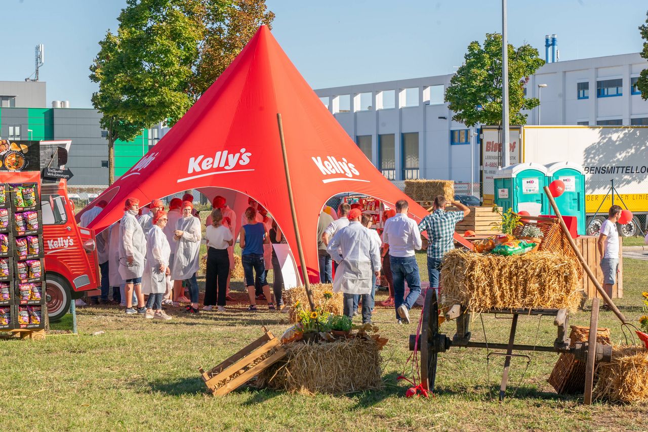 Die fast 200 Gäste konnten einen Blick hinter die Kulissen der Produktion werfen, das Hochregal-Lager besuchen und interessante Fakten über die vielen zahlreichen Nachhaltigkeitsinitiativen von Kelly erfahren. Für regional köstliche Schmankerl – wie ein original Wiener Erdäpfelgulasch, ein pikantes Bauerngröstl, erntefrische Chips und Eislutscher von Reiseckers Eismanufaktur –, unterhaltsame Schätzspiele, einem nostalgischen 18er Steyr Traktor-Fotomotiv und zünftige Musik von und mit den Tanzgeigern war gesorgt.